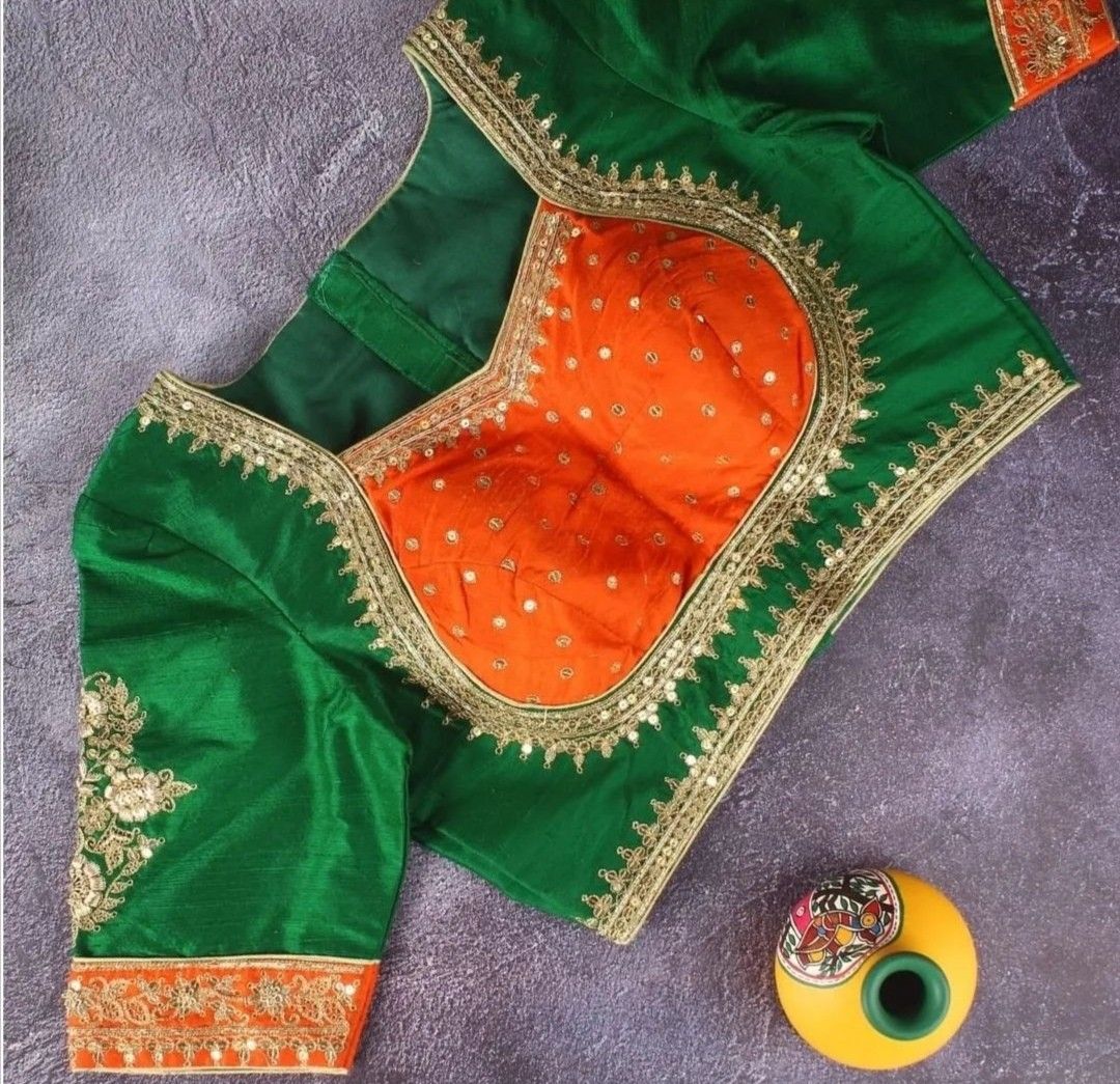 A2. Boat neck, halter neck, sweetheart neck, and deep back designs with dori are highly trending in silk blouses for weddings and festive wear.