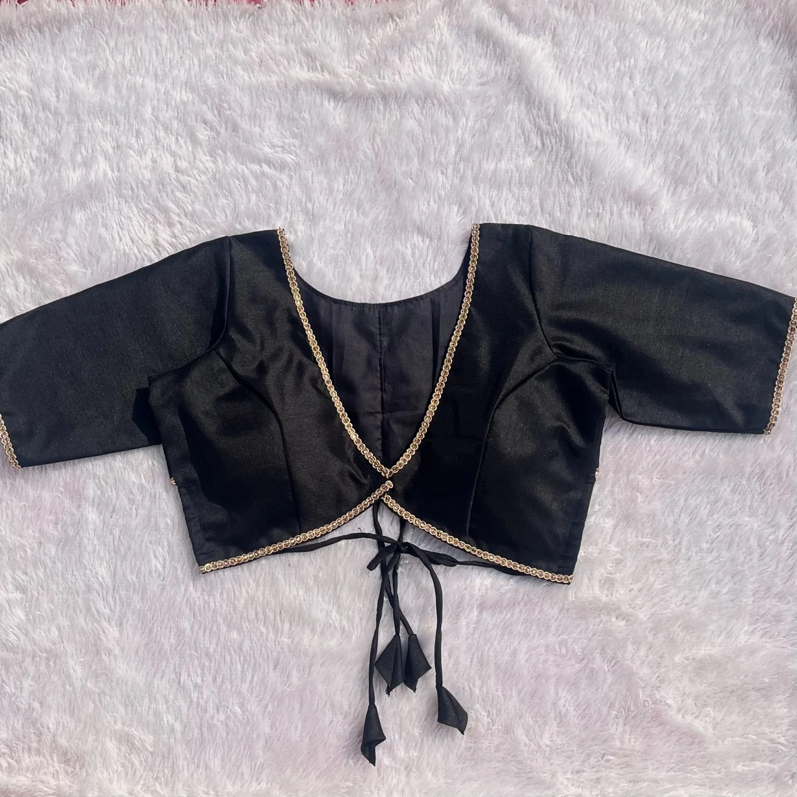 7. Deep Back Silk Blouse with Dori