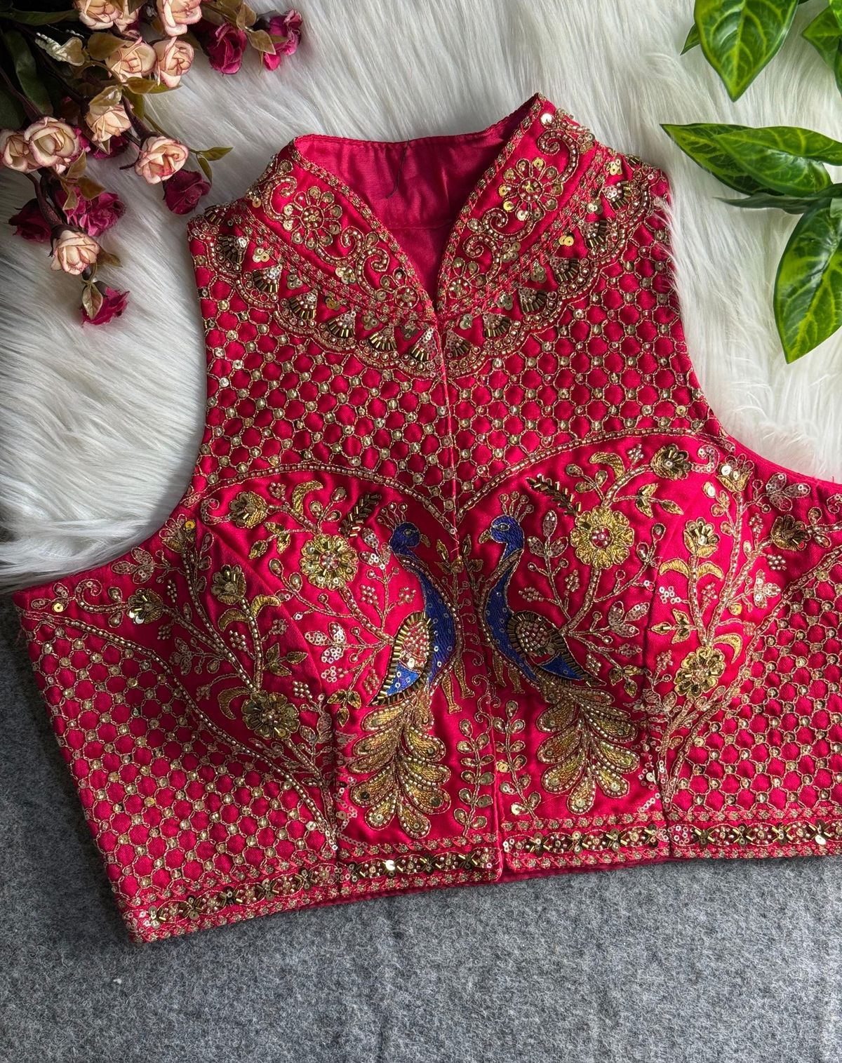 Heavy embroidery never goes out of style for weddings. Silk blouses adorned with zari, thread work, and sequins create a royal and luxurious look. These blouses pair beautifully with bridal sarees and are perfect for grand occasions like receptions and wedding ceremonies.