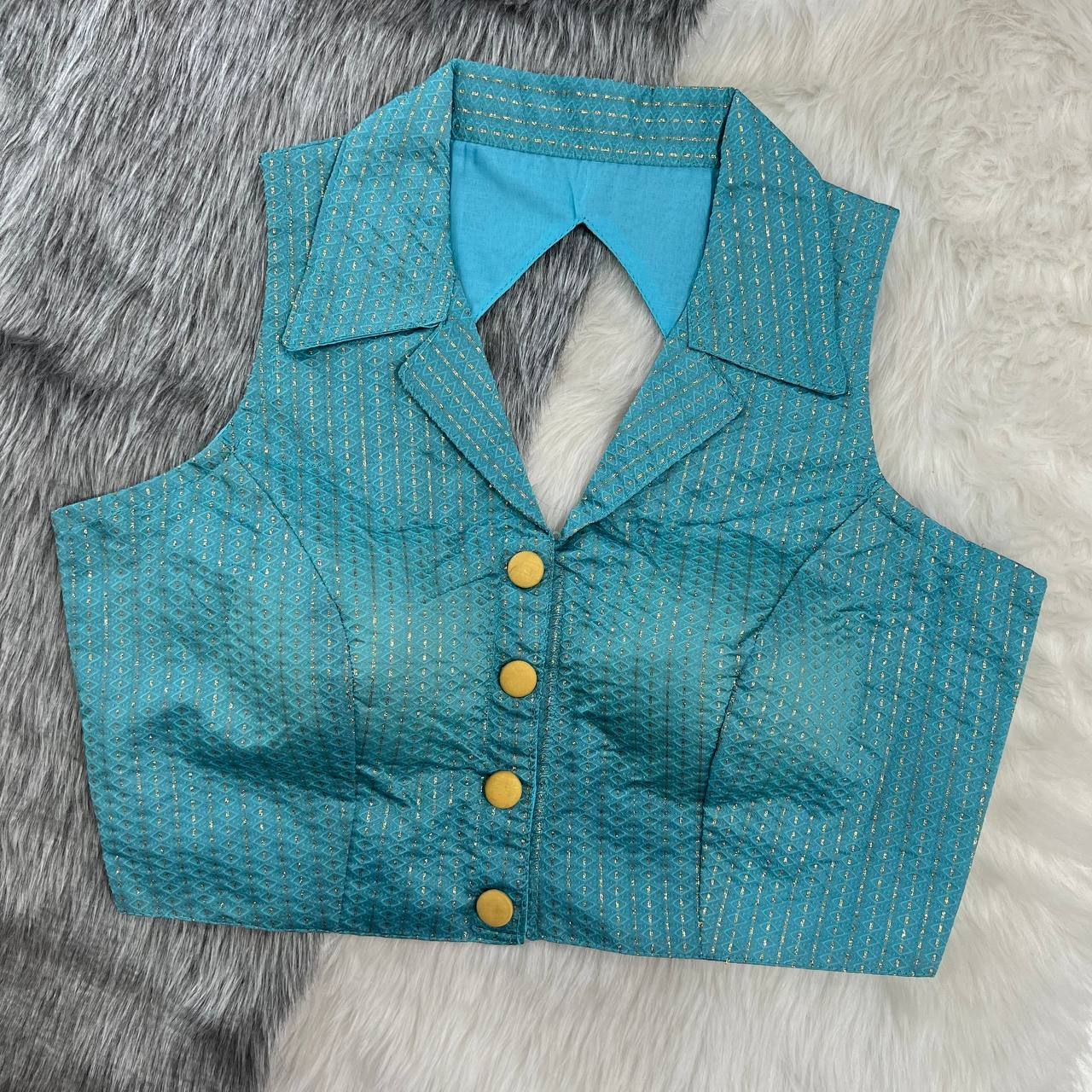 Collar neck blouses give a fusion look and are perfect for working women. They look stylish and professional at the same time.