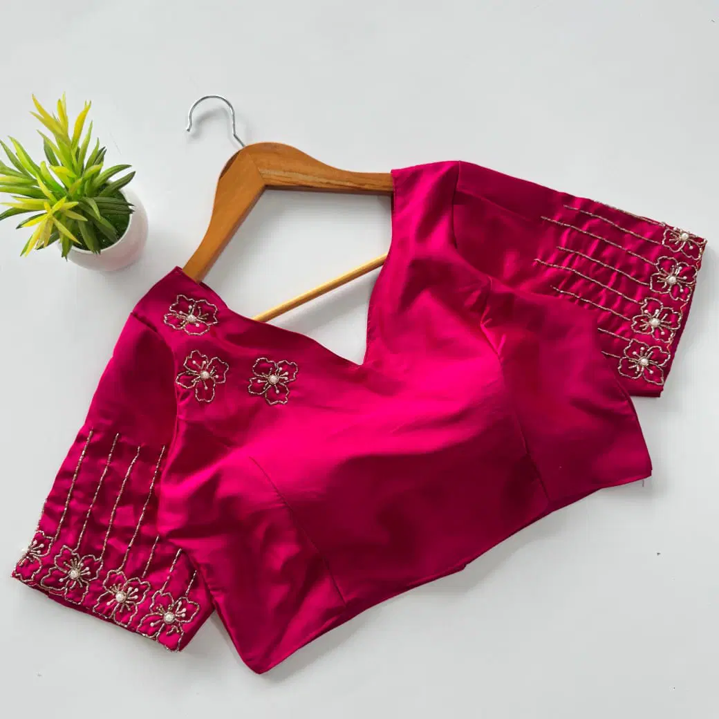 Crop-style blouses are trendy and perfect for modern fashion lovers. Pair them with lightweight sarees for a stylish summer outfit.