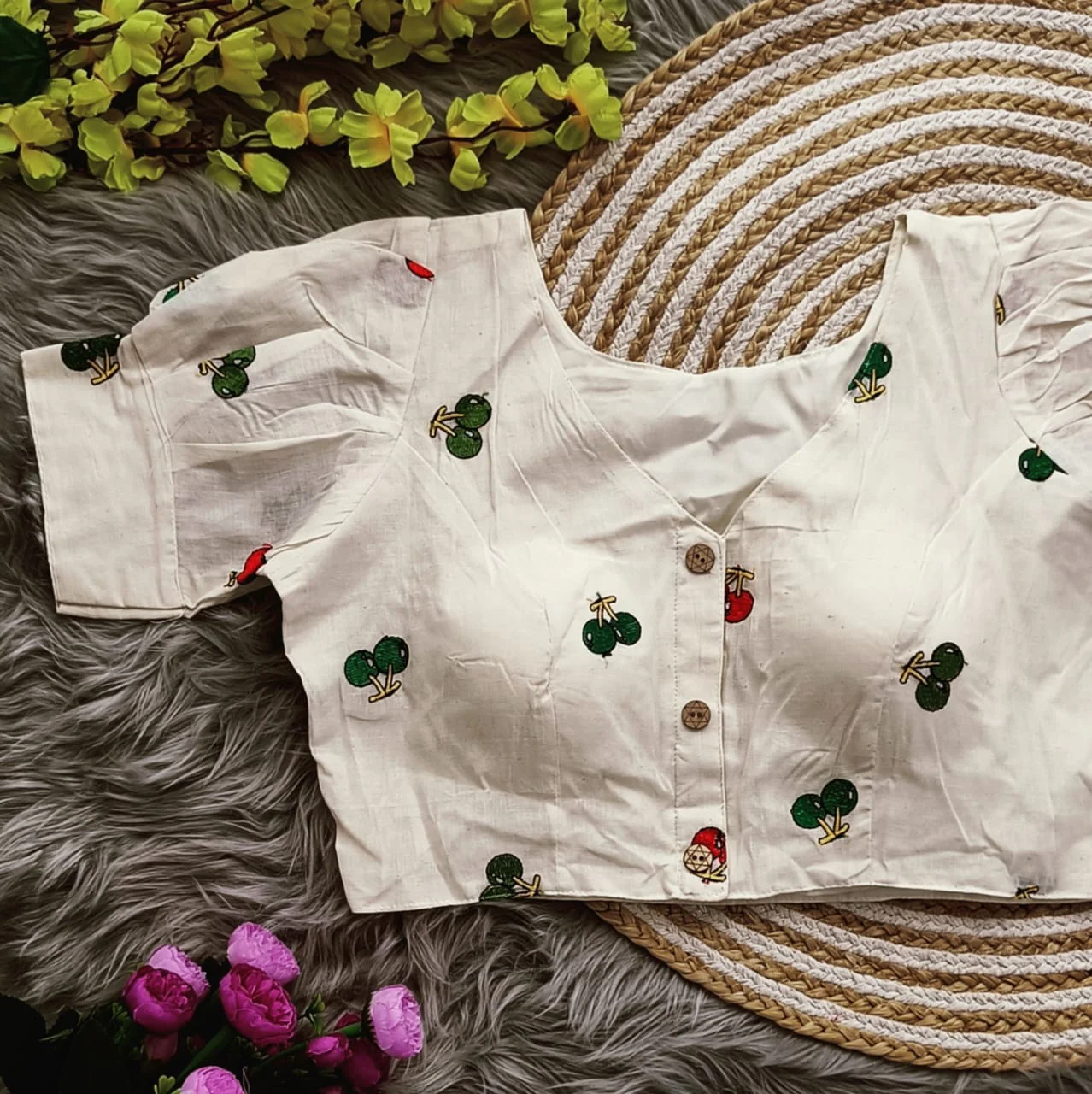Printed cotton blouses, especially floral and block prints, are perfect for summer. They give a fresh and vibrant feel to your outfit.